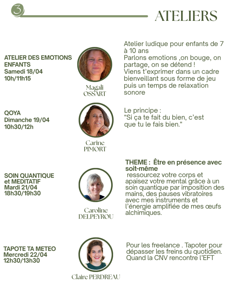 est dédié au bien-être et au développement personnel, où chaque praticien (ne), thérapeutes et coach met son expertise au service de votre épanouissement.